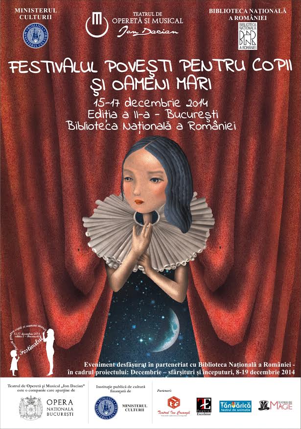 Organizat de Ministerul Culturii și Teatrul de Operetă și Musical „Ion Dacian”, Festivalul „Povești pentru copii și oameni mari” – ediția 2 București, se va desfășura în perioada 15-17 decembrie, la Biblioteca Națională a României. Dedicat grupurilor organizate din unități de învățământ – cu precădere copiilor din medii defavorizate – Festivalul propune o selecție variată de evenimente, reunind spectacole de teatru, teatru muzical și teatru de păpuși, dar și spectacole interactive de magie, proiecții de film sau concerte de colinde. Programul este completat de ateliere de creativitate, canto, mimă și pantomimă, dans, prezentări ale instrumentelor muzicale sau sesiuni cu jocuri de altădată.